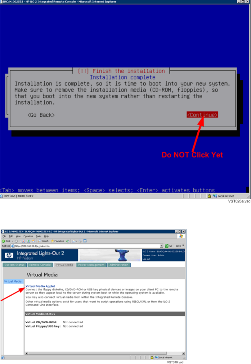 13. In the iLO browser screen, click on the Virtual Media tab, then press Virtual Media Applet.
