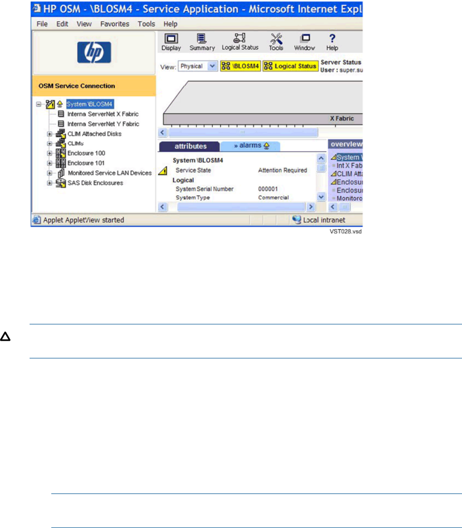 of the system icon. Green indicates no problems reported by OSM. Yellow indicates a possible