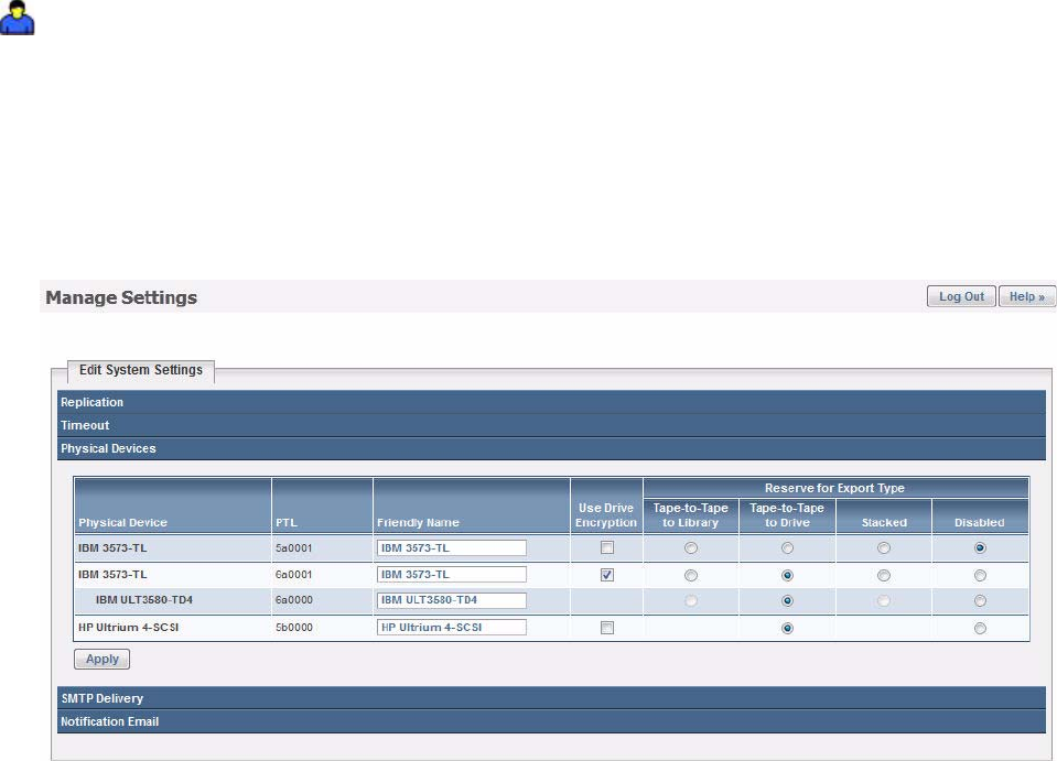 3. Click Physical Devices to expand this area of the page. A page similar to the following is