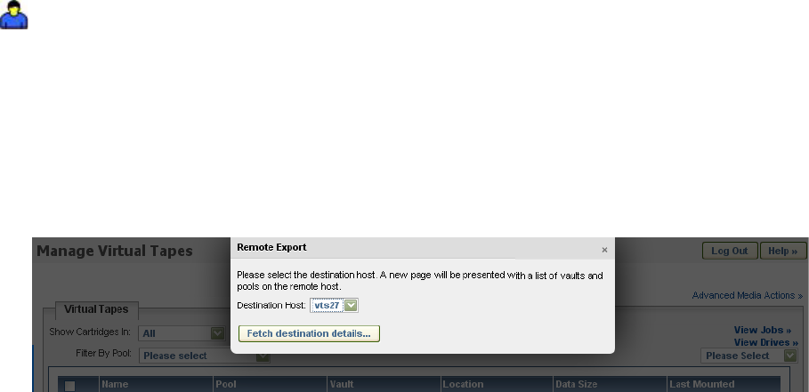 6. Click Fetch destination details. A list of virtual tapes to be exported is then listed on