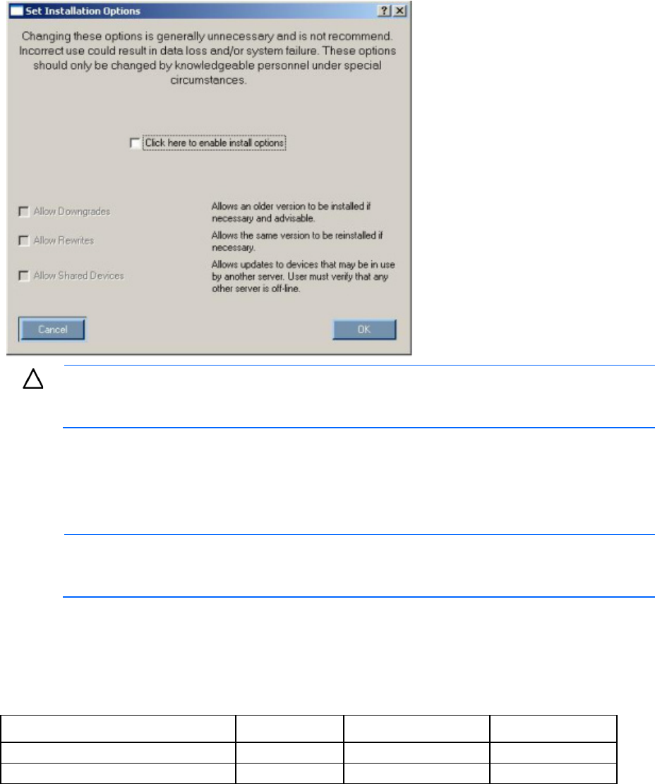 NOTE: HP Smart Update Manager does not support Allow Downgrades or Allow Rewrites for