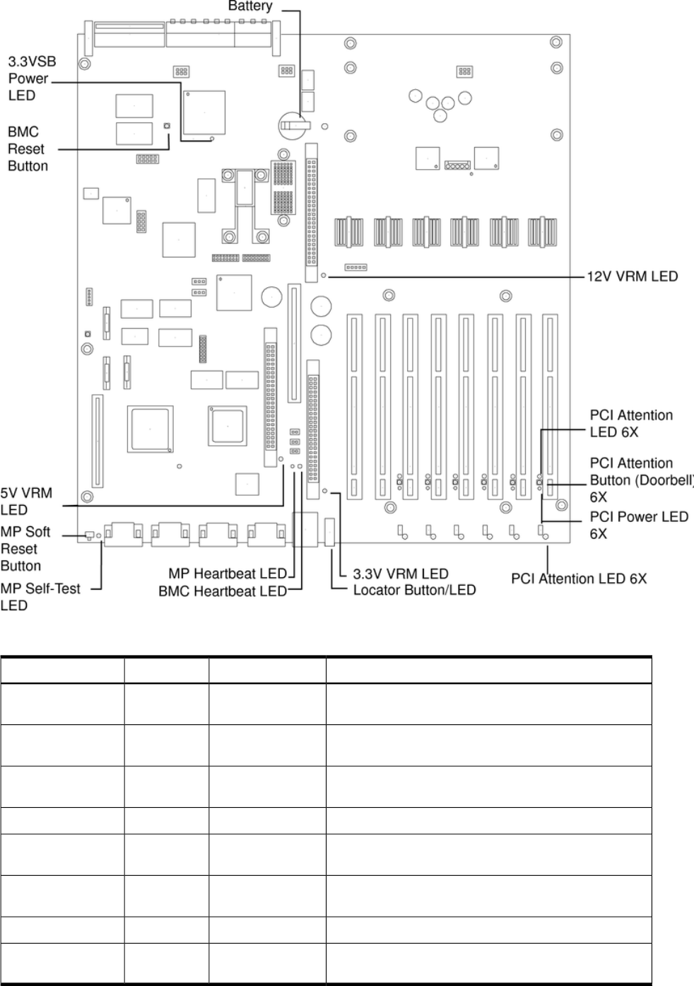 Table 5-5 I/O Baseboard LEDs, Buttons and Sensors