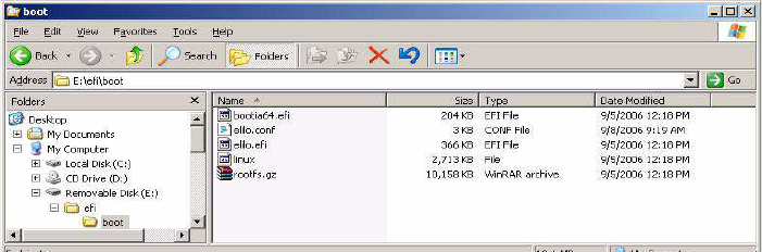 4. Create the bootable directory for Integrity servers (/efi/boot):