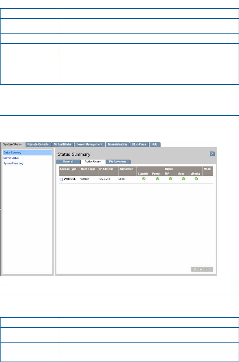 The Active Users page (Figure 16) displays information about the users currently logged in to iLO