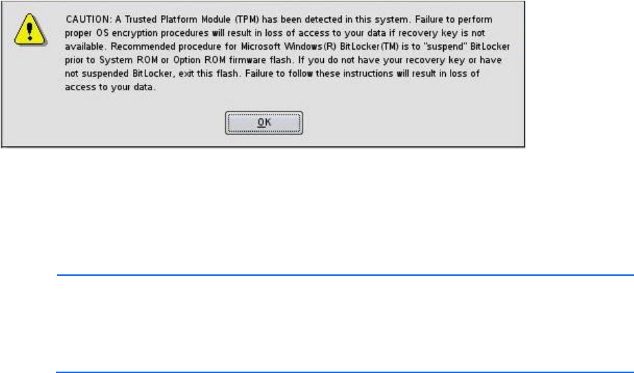 If HP Smart Update Manager detects a TPM, a pop-up warning message appears.