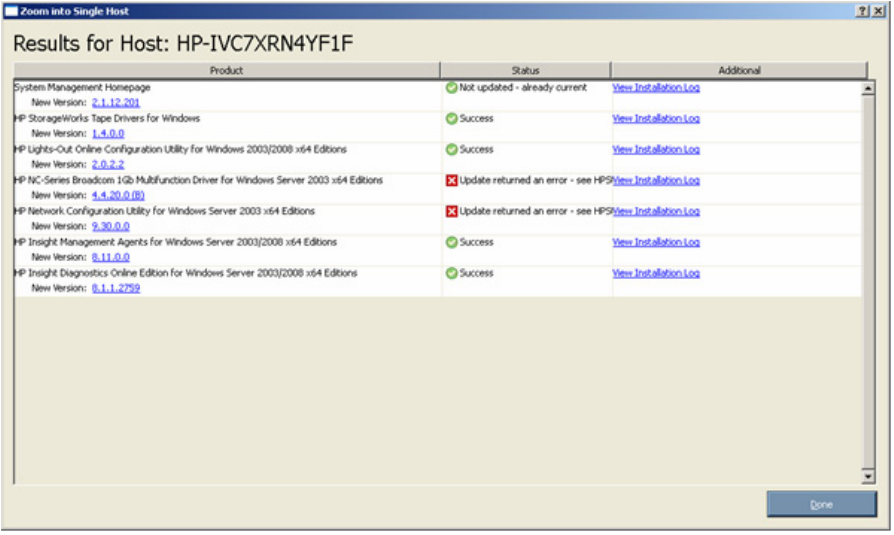 To view single-host installation results, double-click or select the host, and then click View Host.