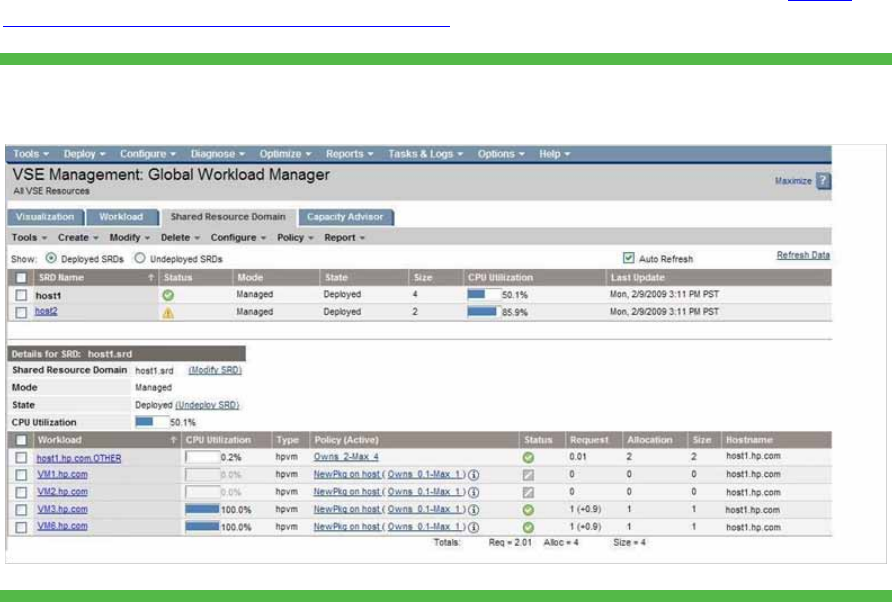 The vmmgr GUI, when started from HP Insight Dynamics – VSE, provides integration with the HP