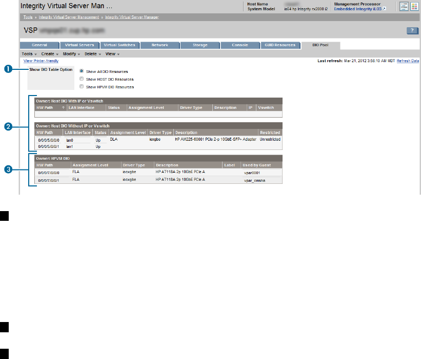 The HPVM DIO table include parameters for the Integrity VM (vPar) DIO. For more information