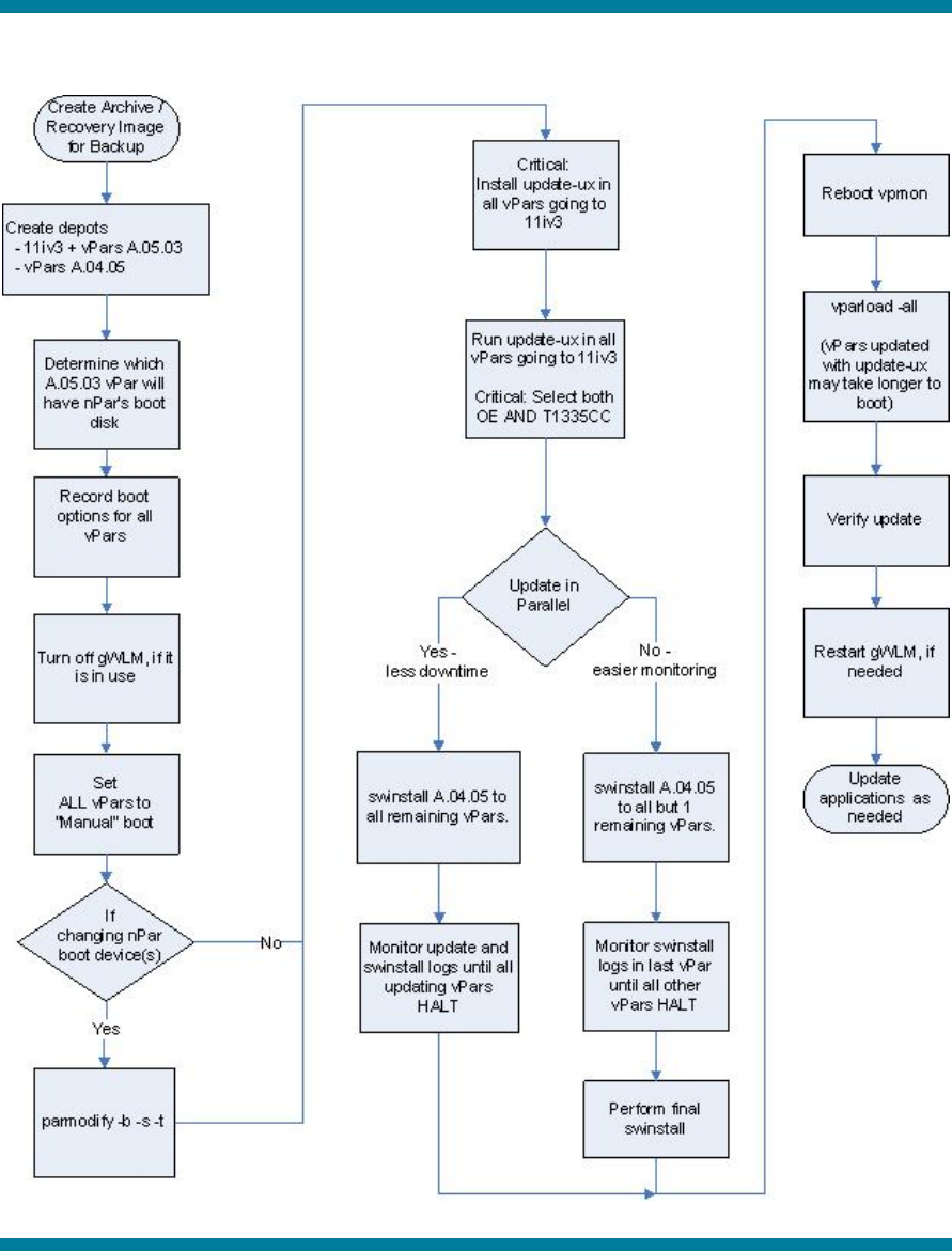 As with the HP-UX 11i v1/11i v2 update, each of the virtual partitions targeted for further update can