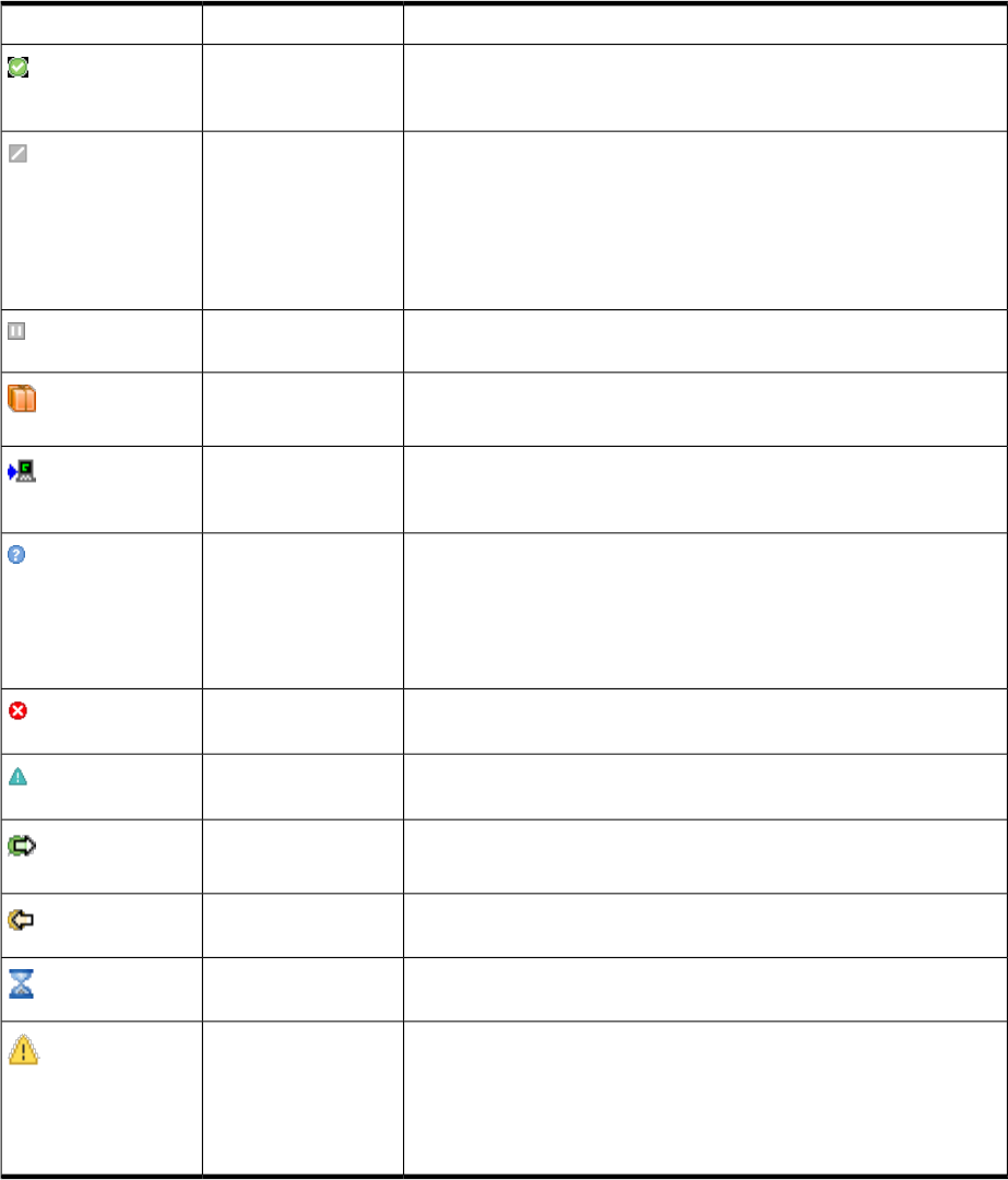 In several actions and views, the status of a component is represented by an icon next to the