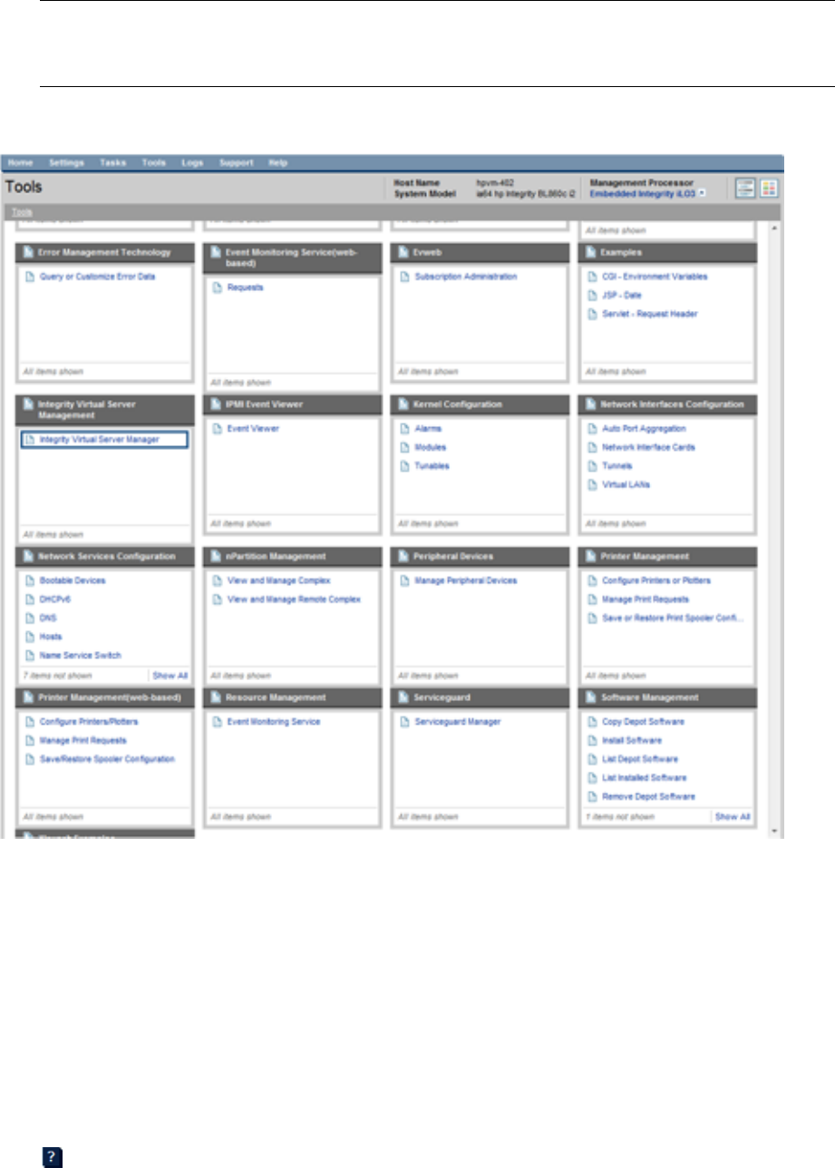 To access help information for any Integrity Virtual Server Manager page, click the question mark