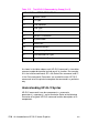 Table 18-2 Note Example: Creating a Simple Drawing (continued) PU50,50;CI25; Lift the pen and move to the center of the PCL Picture Frame (50,50); draw a circle with a radius that is 25% of the picture frame width. E C%1A Enter the PCL mode with the cursor at the current HP-GL/2 pen position. E E C Reset the printer to end the job and eject a page. Any line drawn along the border of the effective window will cause the line to be clipped, producing a line width one-half of the defined pen width.