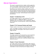 Manual Organization This manual is comprised of eleven chapters and four appendices. The first three chapters introduce you to the range of PJL features, PJL syntax and format, some rules about using PJL, and a brief description of each command. Chapter 4 explores the essential “kernel” commands—those commands that are part of almost every PJL job. Chapters 5 through 10 each describe a separate group of related commands. The remaining chapters cover programming tips and related PJL information.