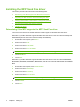 4. In the Automatic Configuration: drop-down menu, select Update Now. 5. Click OK. Changed settings do not take effect in a Point-and-Print installation If you are using a Point-and-Print installation, the notification, billing code, billing-code length, and faxenabled features cannot be refreshed by using the Update Now feature. To make these setting changes take effect in a Point-and-Print installation, delete the Send Fax printer and then reinstall the printer.