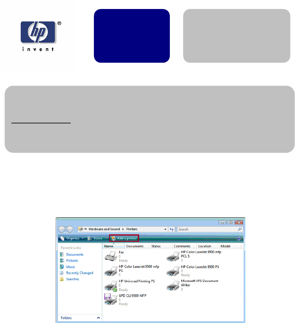 into Windows Vista. When using Add a printer in Vista, most HP printing devices are