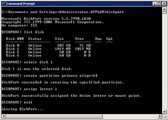 • Enter > exit (to exit diskpart)