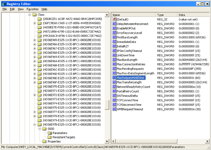 Note: If the MaxRequestHoldTime value is not found in