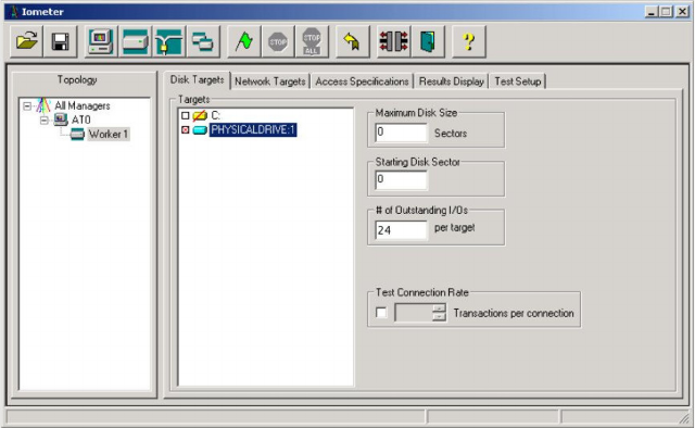 was created for the test. Enter a number into the “# of Outstanding I/Os per