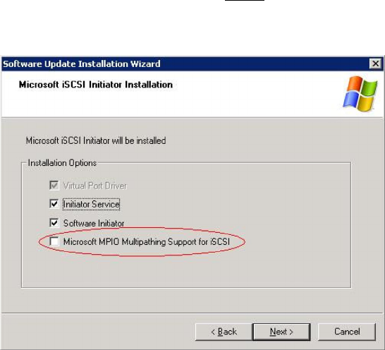 Microsoft™ DSM during the iSCSI Initiator Setup, as it may adversely
