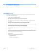 B Technical Specifications NOTE: All performance specifications are provided by the component manufacturers. Performance specifications represent the highest specification of all HP's component manufacturers' typical level specifications for performance and actual performance may vary either higher or lower. Table B-1 HP 15.6” LCD Monitors Display 39.5 cm Type TFT LCD Viewable Image Size 39.5 cm diagonal Tilt -5 to 20° 15.6 inches 15.6-inch diagonal Maximum Weight Monitor only 2.7 kg 5.