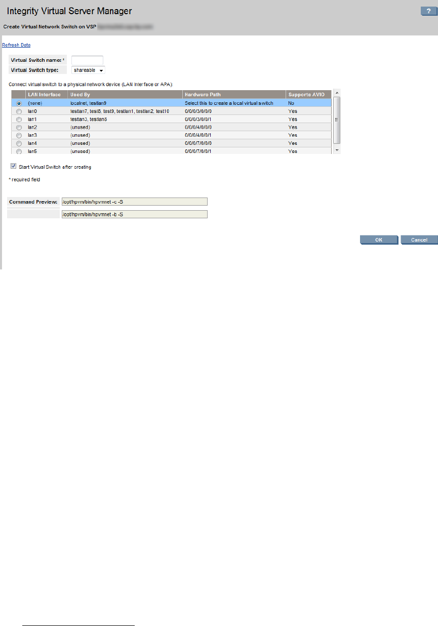 To create a vswitch, select Create→Virtual Switch from the Integrity Virtual Server Manager menu.