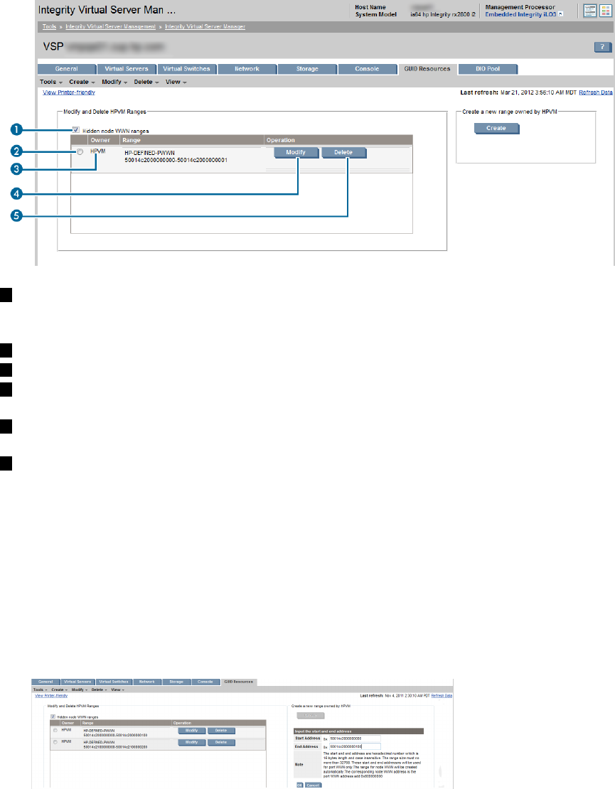 1. Click Create under the Create a new range owned by HPVM heading to create a new WWN