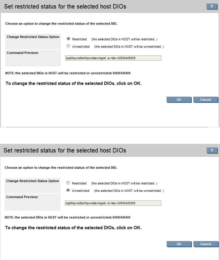 3. Click Change Restricted Status button to open the Set restricted status for the selected host