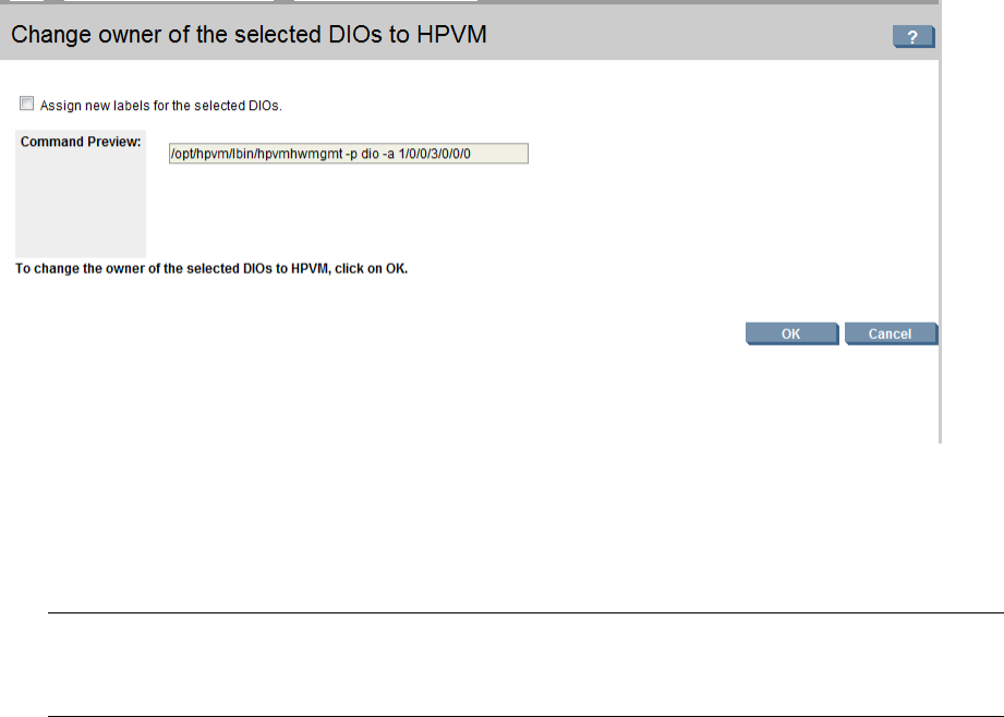 Figure 37 Change owner of host DIOs to HPVM – Assign new labels check box not selected