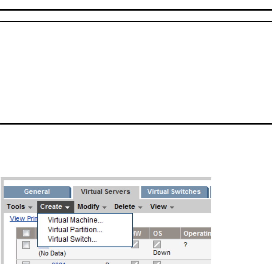 The Create menu allows you to create a VM or vPar or virtual switch. Figure 55 shows the choices