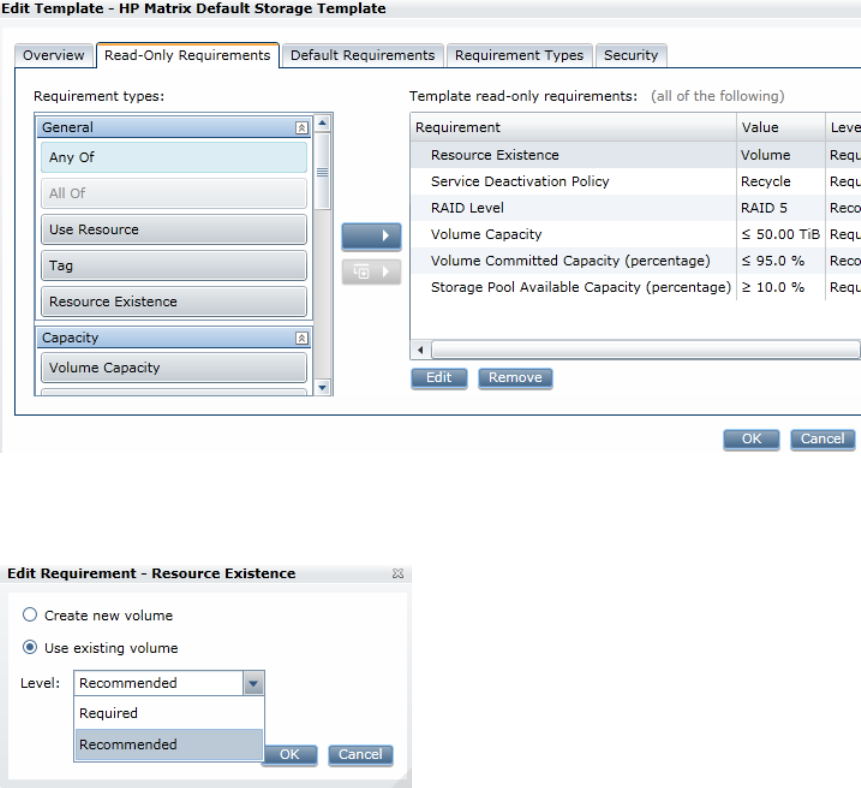 6. Select the Resource Existence requirement in the Template read-only requirements.