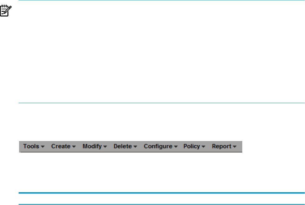 NOTE: Menu selections vary between the Virtualization Manager tabs (Visualization tab and