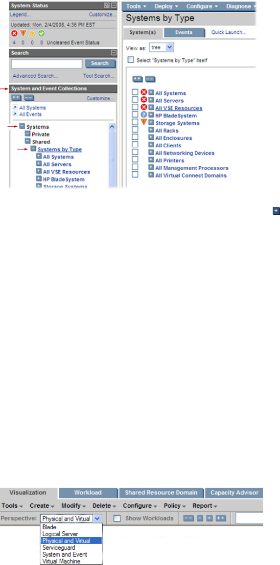 perspective shows the virtual machines and virtual machine hosts that are in that collection. The