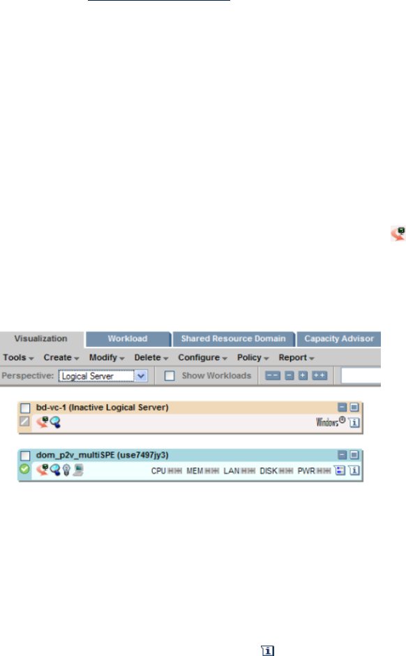 To see the Logical Server perspective, navigate to the Virtualization Manager Visualization tab.