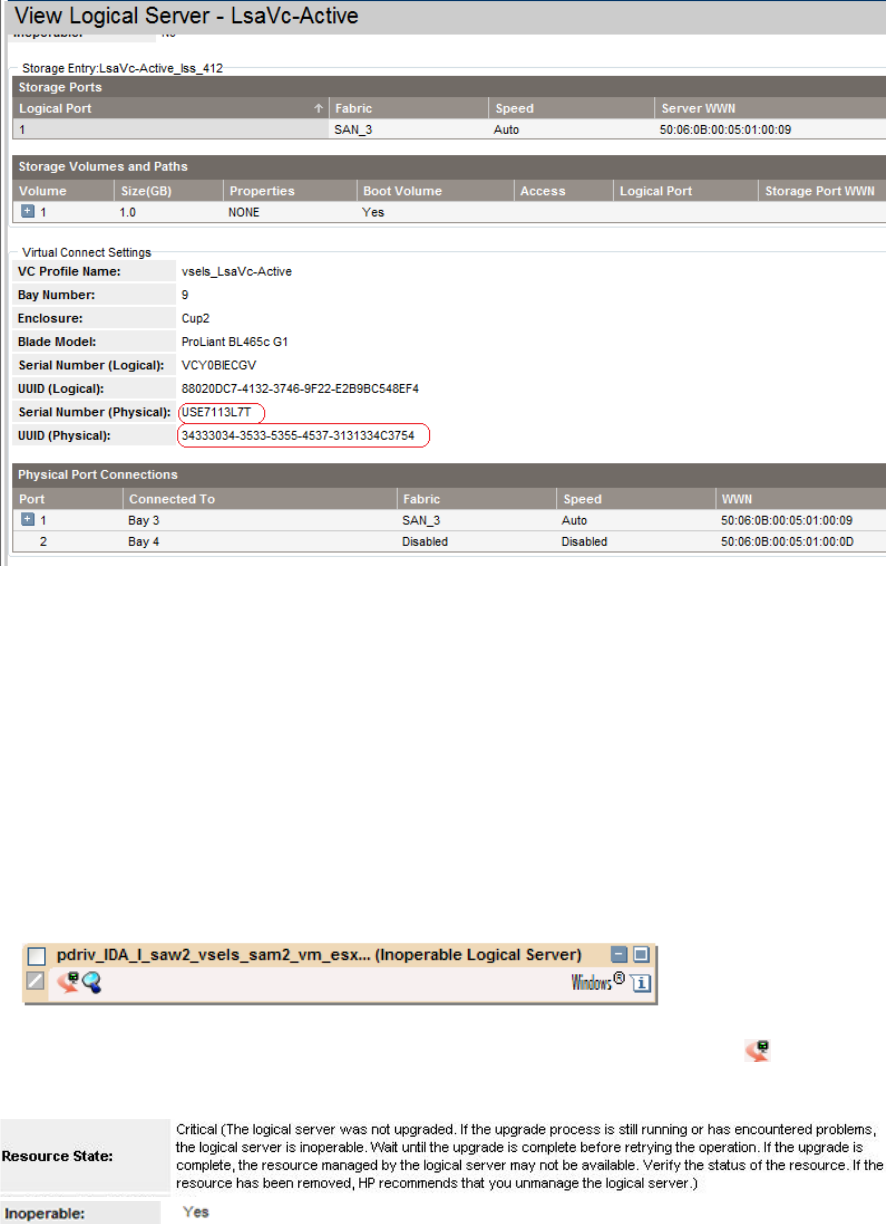 In the Virtualization Manager: Visualization tab, in the Logical Server view, Inoperable Logical