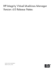 About This Document Thank you for installing HP Integrity Virtual Machines Manager (also called VMMgr, or VM Manager). These release notes describe known issues and other information specific to VM Manager version A.04.00.00.70 (4.0) released in January 2009. VM Manager is a tool that the VM Host system administrator uses to create, monitor, and evaluate HP Integrity Virtual Machines (Integrity VM).