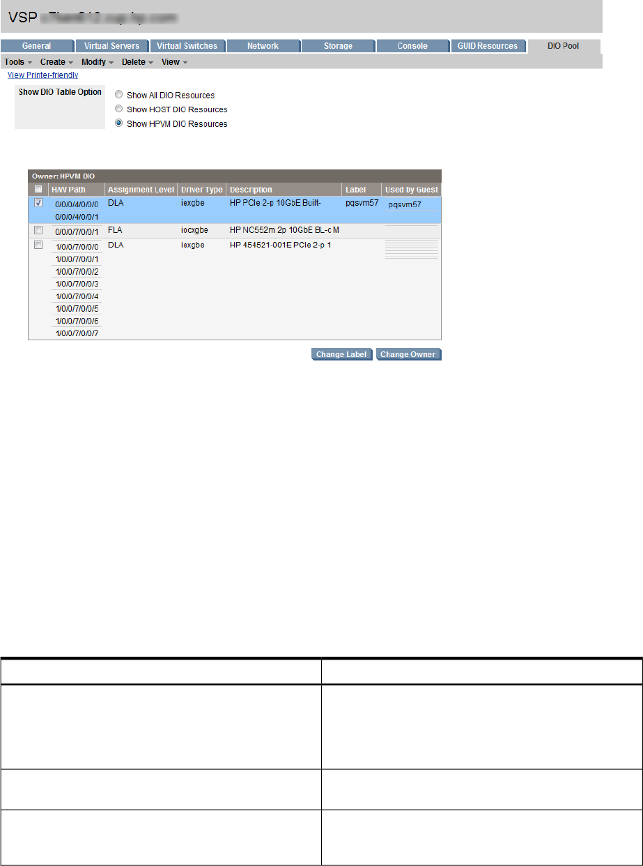 Click Change Owner to change the owner of the DIO to host. For more information, see “Changing