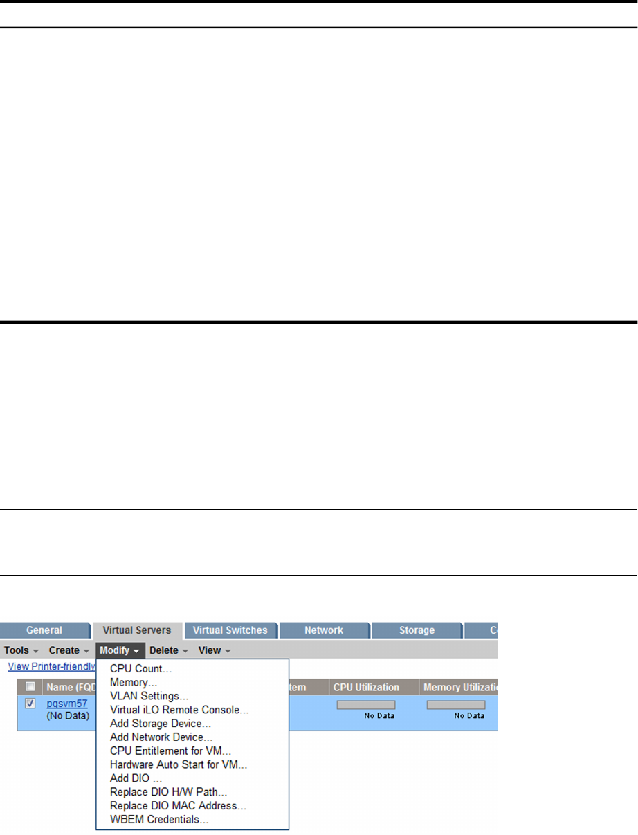 or vPar, such as on the VSP Virtual Servers tab. You can only modify one VM or vPar at a time.