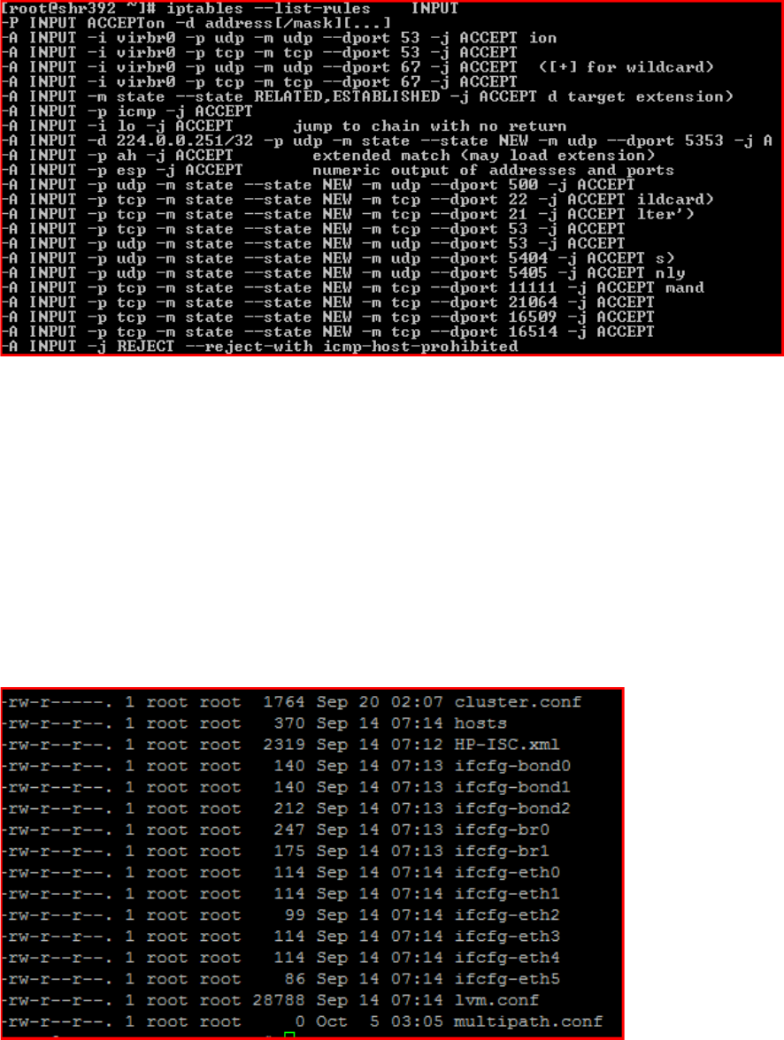 the RedHat cluster configuration manual on the list of ports to enable for cluster communications. A sample output