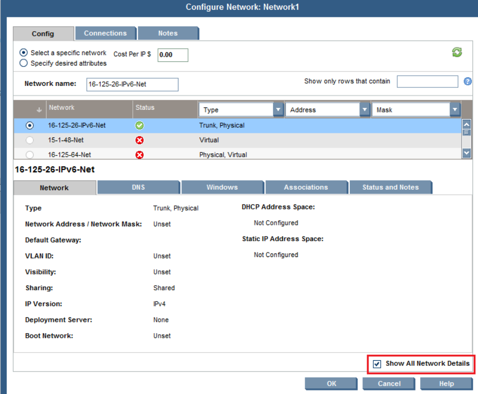 9. Select the appropriate network and (optional) specify a cost. Click Show All Network Details