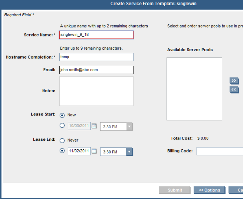 - Create request fails, but the service is still listed in the Service tab in “Reserved” state, and no resources are allocated