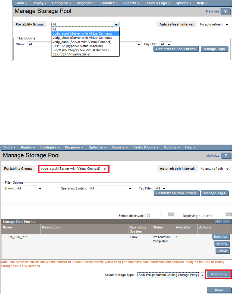 case a Virtual Connect Domain Group) and a new pre-populated storage pool entry is added.