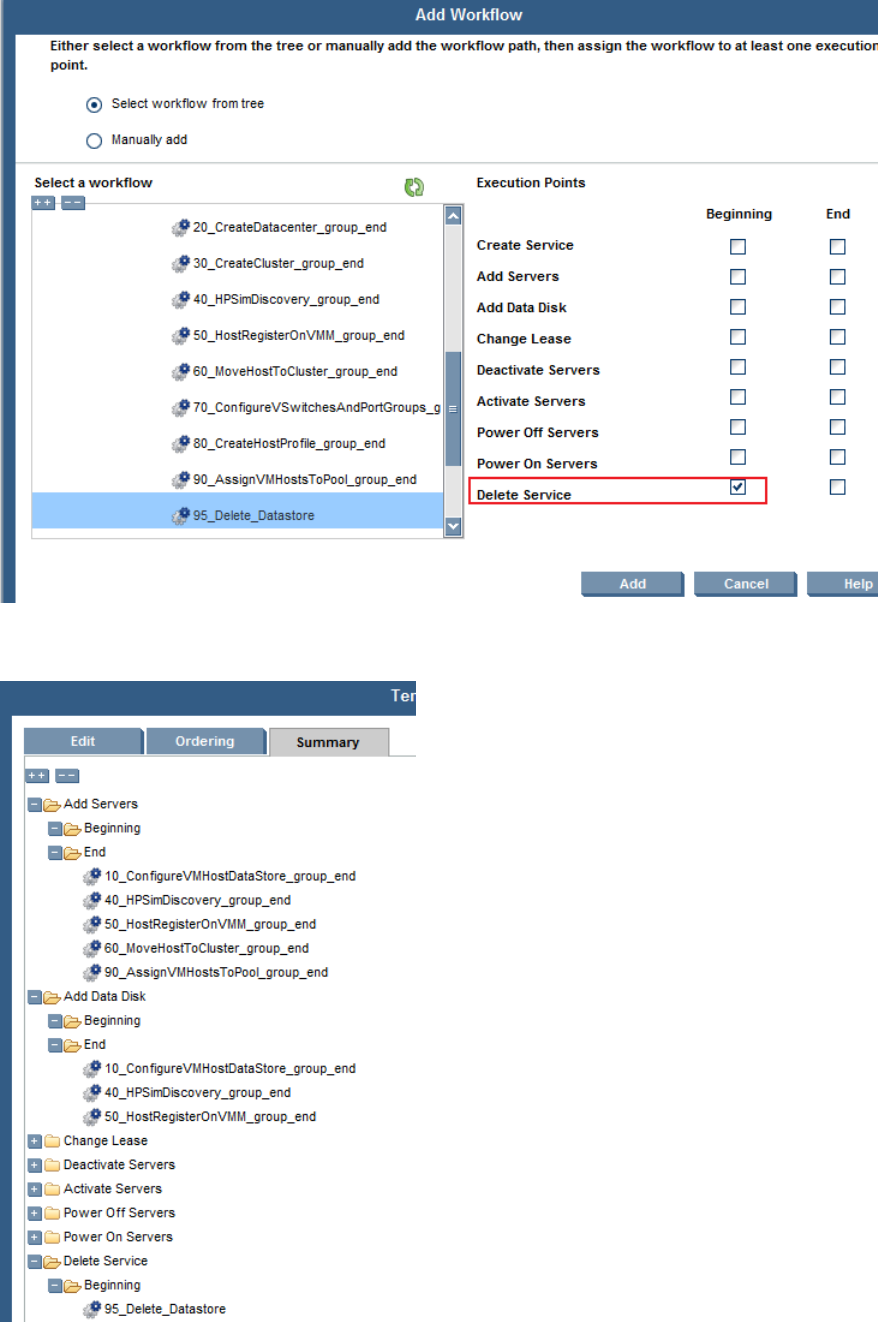 i. Select 95_Delete_Datastore , click the Delete Service Beginning checkbox, and click Add.
