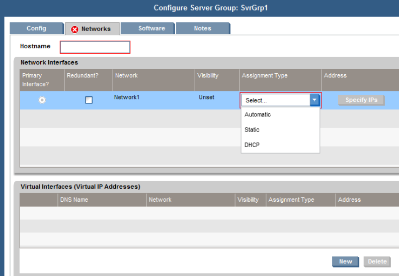 - A virtual IP address can be assigned only to the first network connected to the server group