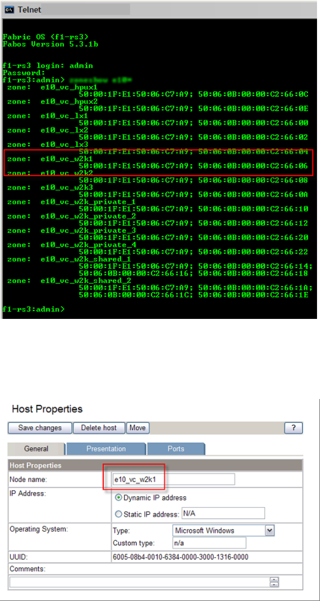 on the EVA uses the same name as the storage pool entry. The host entry is assigned the