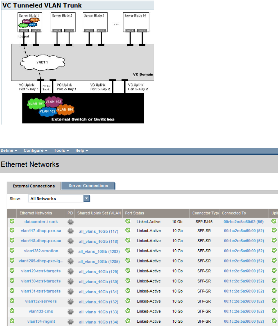 configuration. Following are characteristics of tunneled trunk Virtual Connect networks: