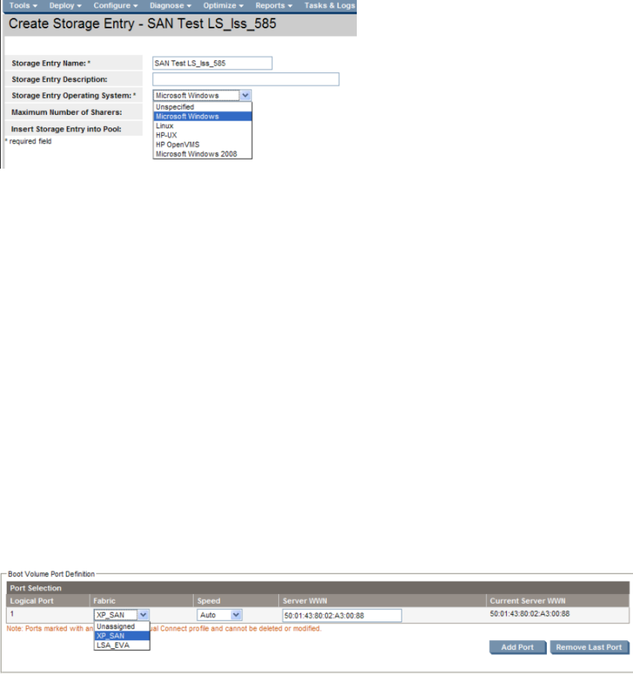 • Storage WWN, uniquely identifying the port used to communicate with the SAN