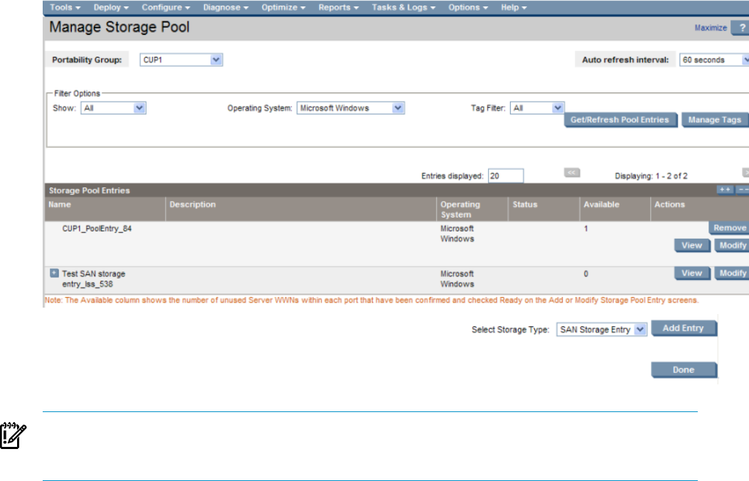 Manage Storage Pool screen, and pressing the Add Entry button. You can also modify an existing