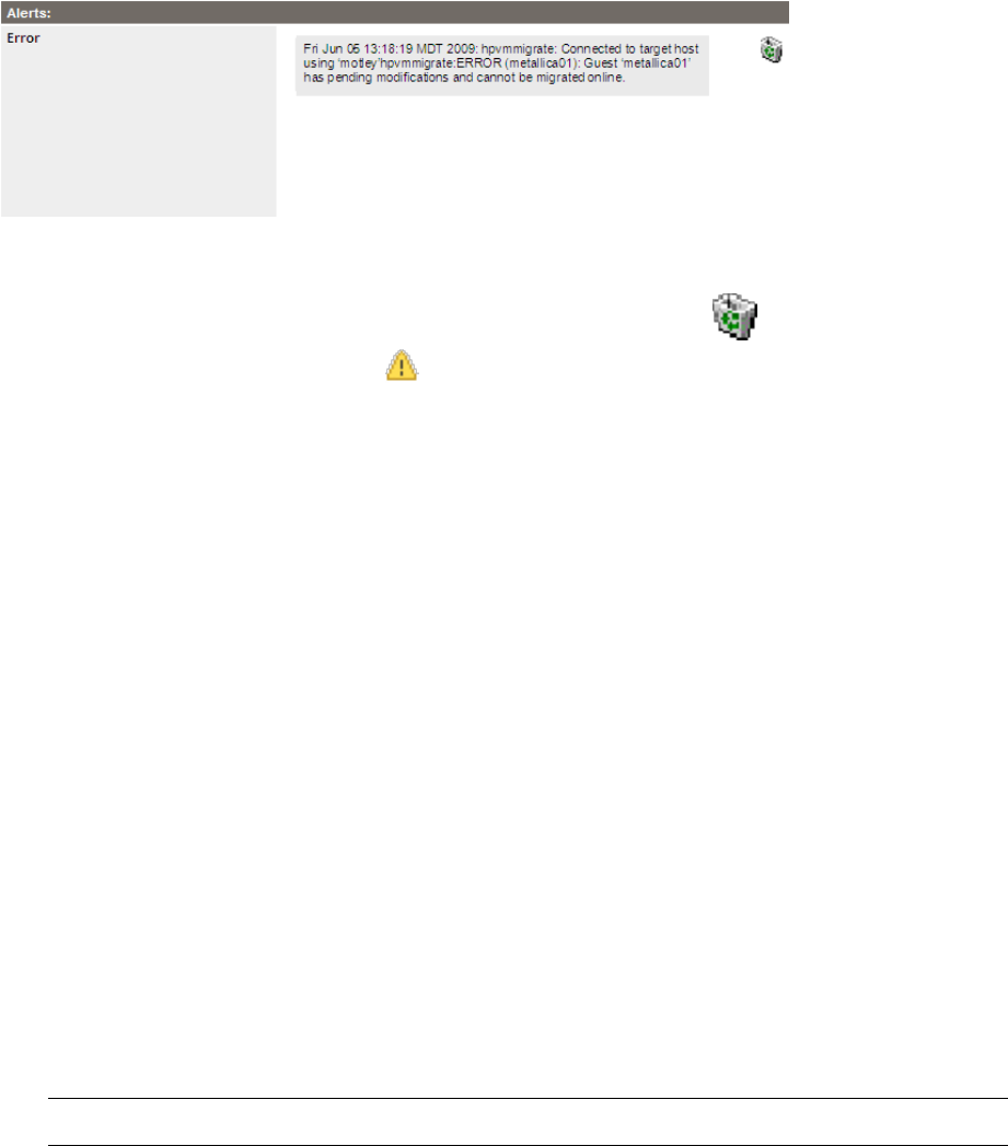 clears the Migration Alerts icon ( ) next to the VM name on the VSP Virtual Servers tab.