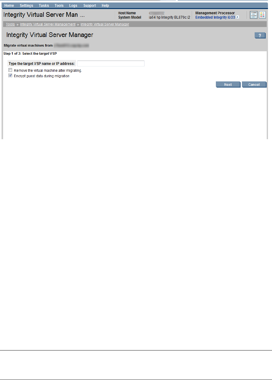 Figure 62 Migrate Virtual Machine: Step 1 of 2