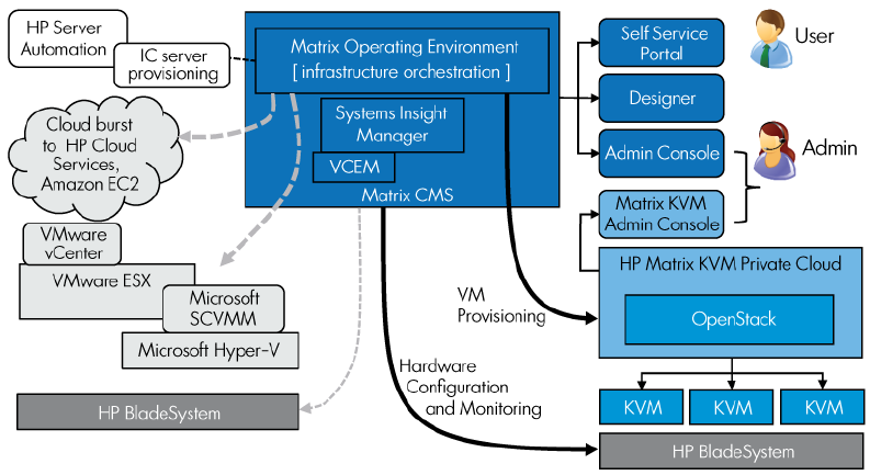 Private Cloud integrated with Insight Management software products. HP Matrix KVM Private Cloud appliance is